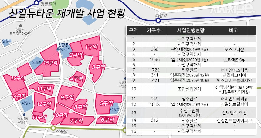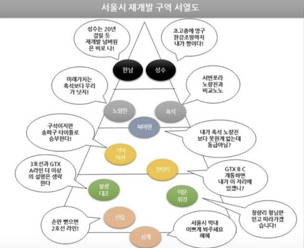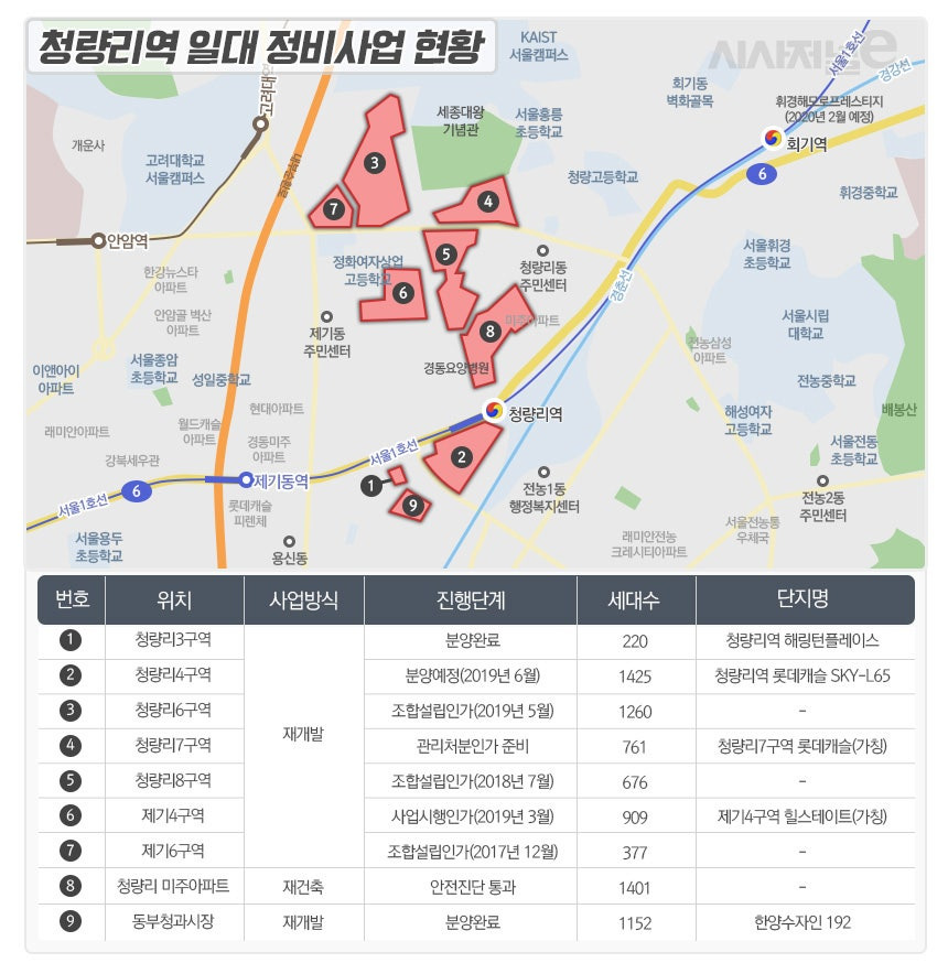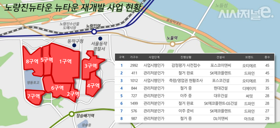 서울시 주요 재개발 지역의 현황 자료입니다.
