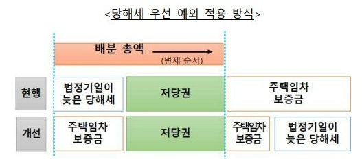 하지만 개정법을 적용 받으면 보증금 3억원 중에서 2억원을, 당해세 배분한도까지 배당받을 수 있습니다.