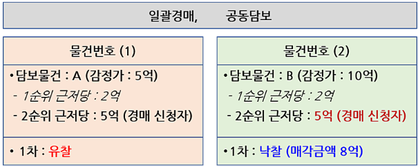 일괄 경매시 배당 순위에 대하여 문의 드립니다.