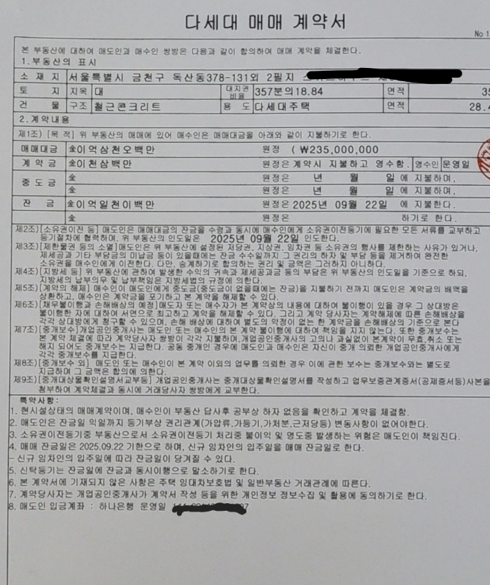 6월13일 잔금 납부하고 6월16일 매매계약 체결했습니다.