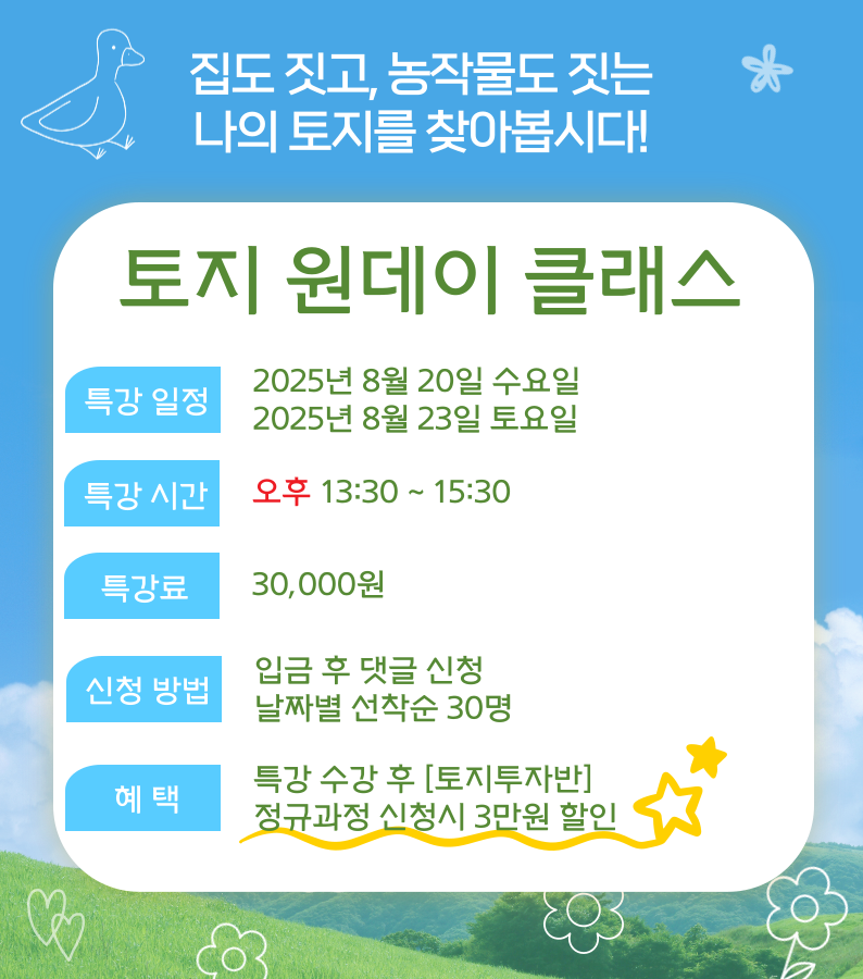 [원데이 클래스] 기초부터 실전까지! 토지 투자반 특강