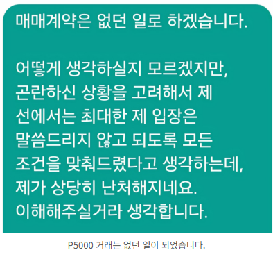 그렇게 차일피일 지연되다가 루즈해 져서 매매 계약은 없던 일이 되어버렸고 1개월을 그냥 허공에 날려버렸습니다.