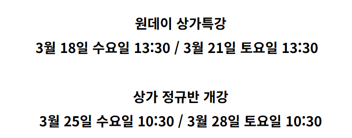 | 상가반 개강일정