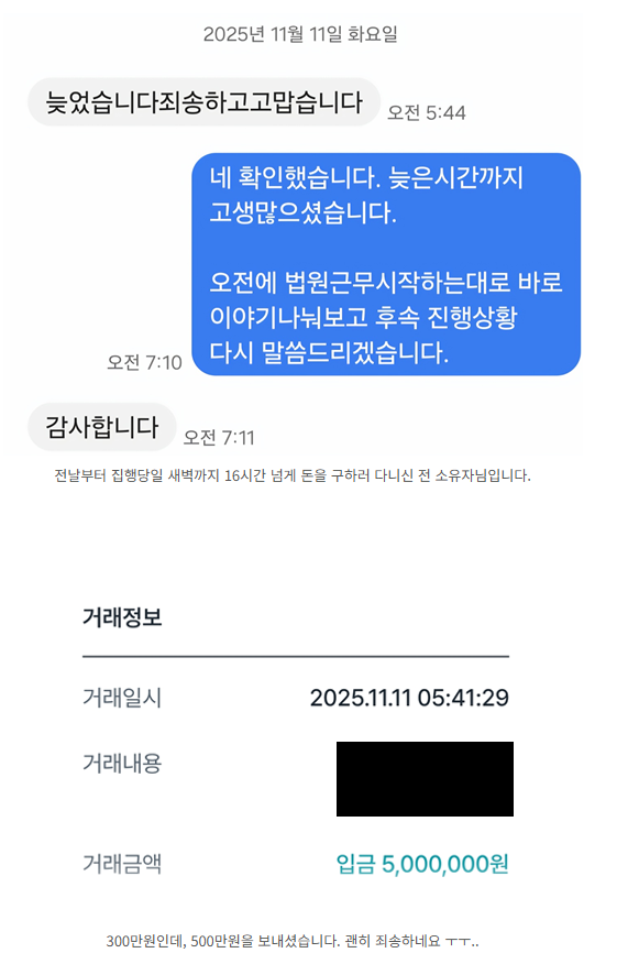 다만 300만원은 없었는지 이체를 못하고 계셨 고 결국 다음날 새벽내내 어디서 돈을 구하신건지 돈을 만들어 오셨습니다.