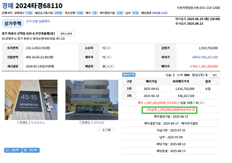 안타깝게, '차순위 신고인'에 머물고 말았습니다.ᅮ