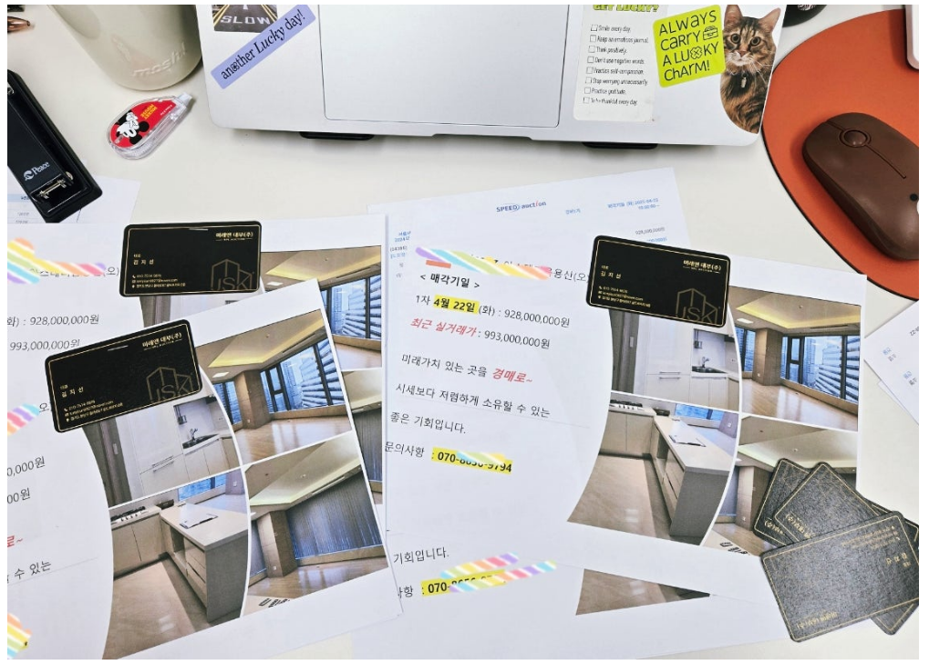 1차는 주변 부동산에 명함과 전단지를 돌리며 매물을 소개하고 (with 비타500)