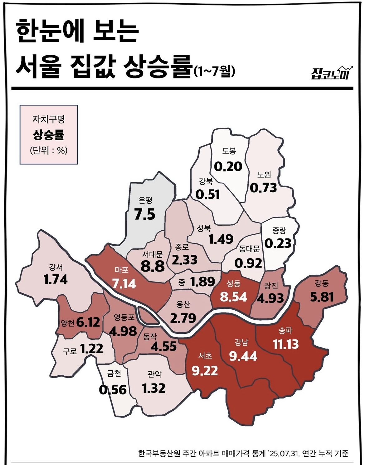 다른 지역과 큰 격차를 보이면서 서울 부동산 시장의 지역별 양극화가 계속 심화되고 있음을 보여주고 있습니다.