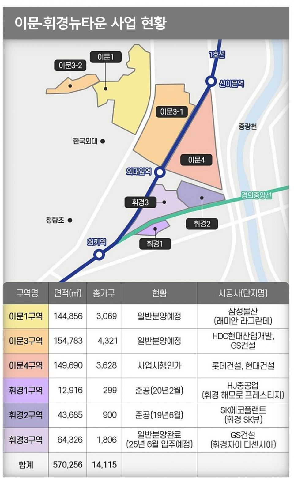 동대문구는 청량리역 주변과 이문휘경뉴타운을 중심으로 재개발이 활발합니다. 이문휘경뉴타운은 약 1만 4천 세대 규모로 계획된 대규모 사업으로, 이문1, 3, 4구역 등에서 활발하게 개발이 진행 중이며, 이문 아이파크 자이는 2025년, 이문4구역은 2027년 또는 2029년경 완공될 것으로 예상됩니다. 청량리 재개발촉진지구에서는 여러 구역에서 사업이 진행 중이며, 청량리4구역은 준공 예정, 청량리9구역은 정비구역 지정 직전에 있습니다. 신설1구역과 용두1-6구역에서는 공공재개발이 추진되고 있습니다.
