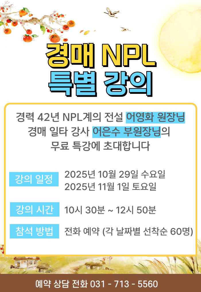 [분당NPL경매학원 2025년 11월 무료 특강 안내] 경매 및 NPL 강의 _ 어영화 원장님 / 어은수 부원장님