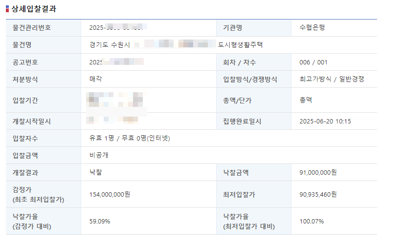 제 3자가 9,100만원에 낙찰을 받았습니다.
