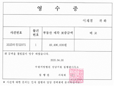 전회차 금액을 아주 조금 상회하게 응찰을 하게 되었습니다.