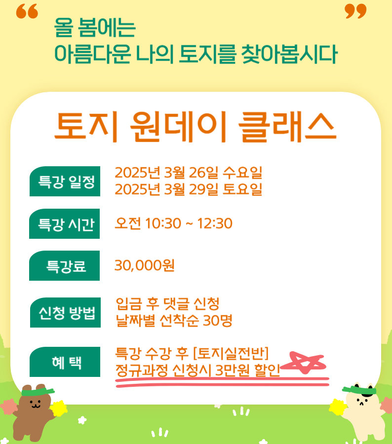 ▶ 특전 : 특강 신청 후 [토지실전반] 정규과정 신청시 특강료 30,000원 할인
