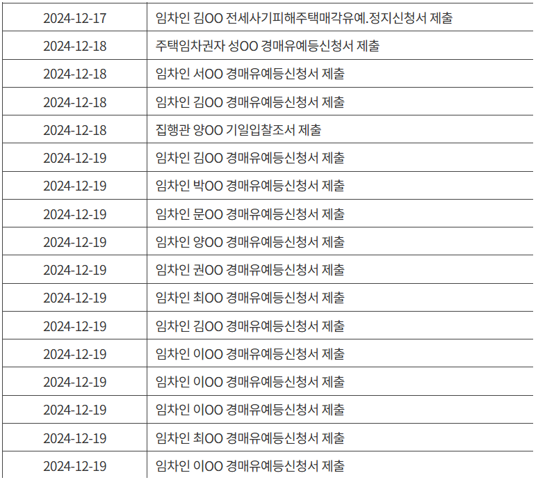 경매 하루전 부터 임차인의 경매 유예 신청이 들어오기 시작하는데,