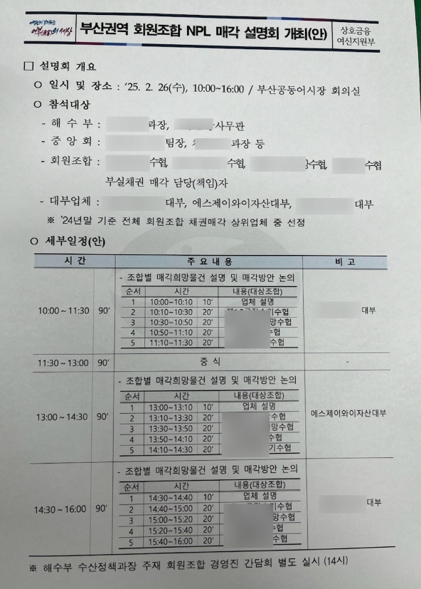 -왜냐면 계획안대로라면 저는 저대로 회사 홍보하고, 단위 수협들은 수협들대로 매각 대상 부실채권 설명한다고 해서